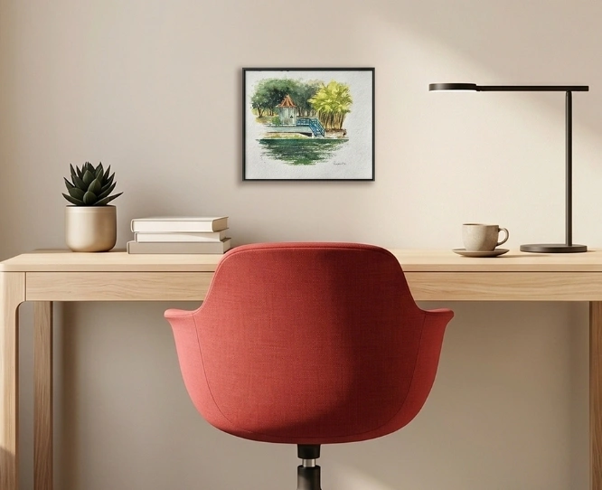Nature painting capturing still water and reflection.