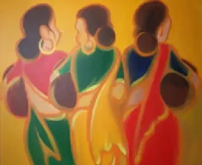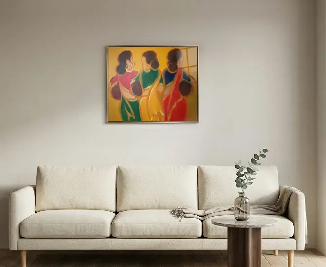 A vibrant abstract acrylic painting inspired by village life, designed to complement modern home décor and contemporary interiors.